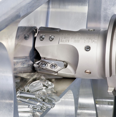 为了提高铝件铣削的生产率,促成金属去除率更高,特别是针对大型航空航天结构件,机床制造商开发了主电机功率高达150Kw,主轴转速达33000 rpm的铣床。为了满足这样的加工需求,伊斯卡拓展了其90°主偏角可转位铣刀系列,推出夹持大尺寸刀片的铣刀,能实现的最大切削深度为22 mm (.870")。该铣刀的设计确保即便在超高转速下也不会因高离心力导致刀片在径向发生位移。这一概念保证在转速高达31000 rpm时也能执行可靠的铣削加工。